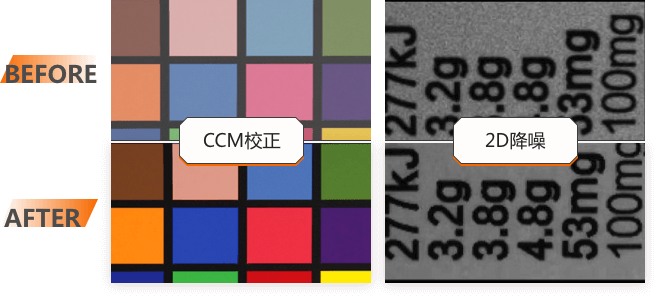 相機內置多種復雜算法和功能,如無損壓縮、2D降噪、鏡頭陰影校正、CCM等,能夠全方位改善相機圖像質量,在保證相機擁有更高幀率的前提下,同時具備更加卓越的品質。