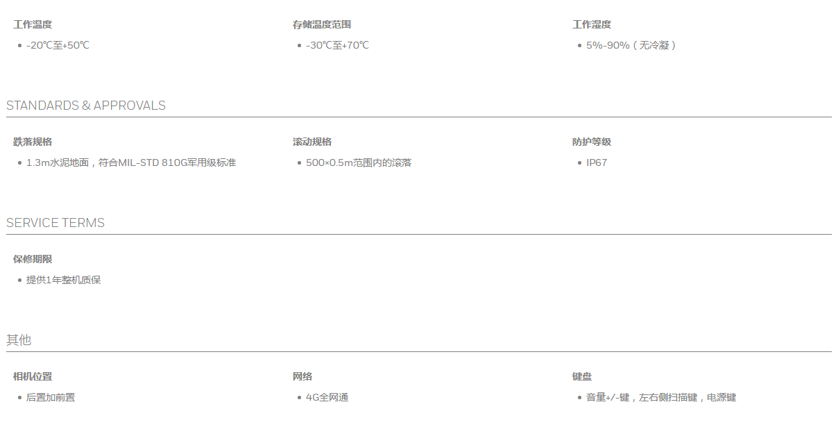 工業級的耐用性,可以經受嚴酷的環境考驗,能夠承受1.3米跌落及IP67防塵防水等級